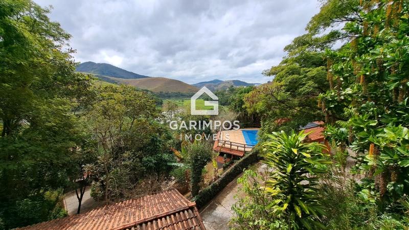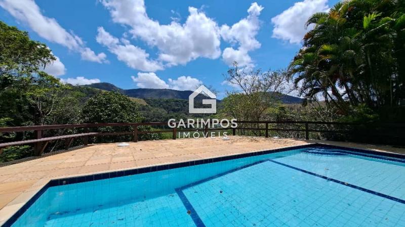 Maravilhoso sitio composto de ampla casa principal com 4 quartos, sendo 3 suítes, cozinha ampla, sala de jantar aconhegante, sala ampla com lareira, agradável e espaçosa varanda, garagem coberta, salão de jogos com banheiro, grande piscina com sauna e área gourmet com churrasqueira e fogão à lenha.